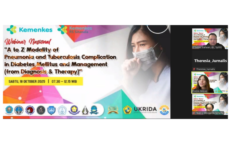 Forum Komunikasi Fakultas Kedokteran dan Ilmu Kesehatan Badan Kerja Sama Perguruan Tinggi (ForKom FKIK BK-PKTI) Kristen di Indonesia bekerja sama dengan Lembaga Penelitian dan Pengabdian kepada Masyarakat (LPPM) UKRIDA kembali menunjukkan komitmennya dalam menghadirkan inovasi bagi dunia kesehatan melalui penyelenggaraan Webinar Nasional bertema “A to Z Modality of Pneumonia and Tuberculosis Complication in Diabetes Mellitus and Management (From Diagnosis & Therapy)”. Kegiatan ini berlangsung secara daring melalui Zoom Meeting pada Sabtu, 18 Oktober 2025 dan diikuti oleh mahasiswa, dosen, serta tenaga medis dari berbagai institusi di Indonesia.