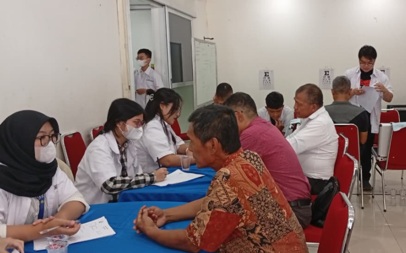 Tahapan awal dalam rangkaian pemeriksaan kesehatan mata dan gangguan penglihatan adalah anamnesis. Mahasiswa reguler angkatan 2023 bertugas melakukan anamnesis kepada pasien, yang kemudian dilanjutkan dengan pemeriksaan autorefraksi dan pengecekan dioptri (daya lensa) bagi pasien yang sudah menggunakan kacamata. Setelah itu, pasien diarahkan untuk menjalani pemeriksaan refraksi menggunakan Snellen chart dan trial lens. Pemeriksaan refraksi ini dilaksanakan oleh mahasiswa reguler angkatan 2022.