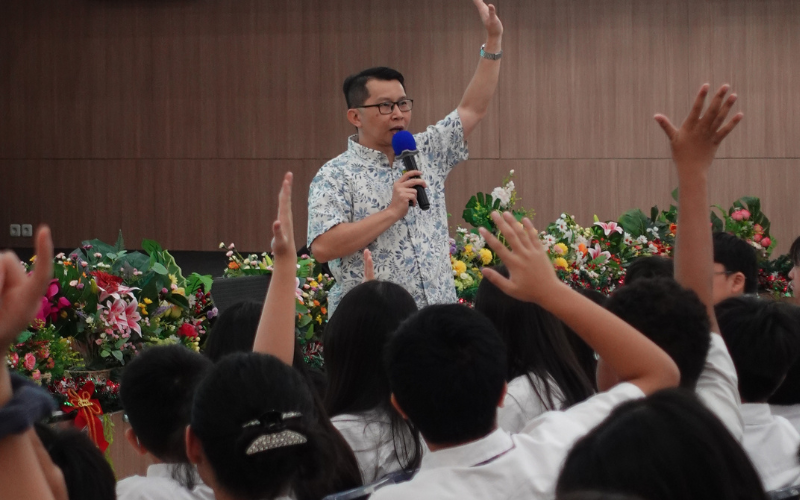 Sesi utama dipandu oleh William Gunawan, S.Psi., M.Min., M.Si., Ph.D., CLC., Dosen Fakultas Psikologi, yang membuka kegiatan dengan kuis mitos atau fakta tentang kesehatan mental sebagai langkah awal untuk membangun kesadaran siswa akan pentingnya memahami kesehatan mental sejak dini. Melalui penyampaian yang sederhana dan relevan dengan kehidupan remaja, William memperkenalkan konsep bahwa kesehatan mental itu seperti termometer: kadang stabil, kadang naik, dan kadang menurun. “Yang terpenting bukan hanya kondisi yang sedang dialami, tetapi kemampuan untuk mengenali perubahan, memahami kapan tubuh dan pikiran membutuhkan istirahat, serta mengetahui kapan seorang siswa perlu berani mencari bantuan,” pesannya.