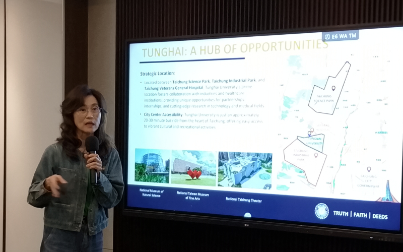 Tunghai University, yang didirikan pada tahun 1955 dan berlokasi di Taichung, Taiwan, merupakan salah satu universitas swasta terkemuka di Taiwan. THU secara aktif mendorong internasionalisasi melalui kemitraan akademik, program mobilitas, serta kolaborasi penelitian. Universitas ini juga dikenal memiliki keunggulan di bidang teknik semikonduktor dan menjalin kerja sama erat dengan berbagai institusi, termasuk Veteran Hospital, Taichung Science Park, dan Taichung Industrial Park.
