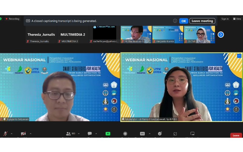 LPPM UKRIDA bekerja sama dengan Perdaweri (Perhimpunan Dokter Anti Penuaan, Wellness, Estetik dan Regeneratif Indonesia) Jawa Barat serta Forkom FKIK BKPTKI menyelenggarakan Webinar Nasional bertema wellness dan pengelolaan penyakit metabolik secara daring melalui Zoom Meeting pada 14 Desember 2025